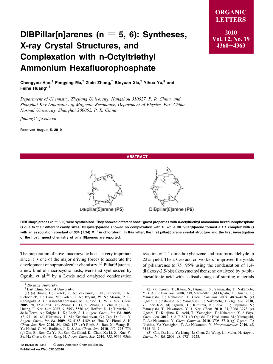 Chengyou Han, Fengying Ma, Zibin Zhang, Binyuan Xia, Yihua Yu, and Feihe Huang