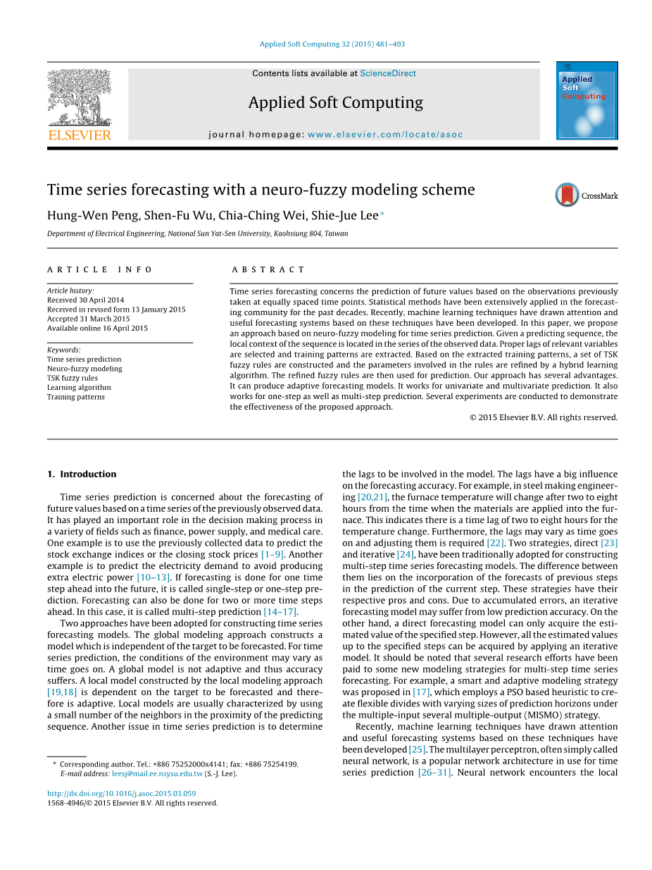 【摘要】时间序列预测是基于先前等距间隔时间点观测的未来值的预测。其统计方法在过去几十年的预测中得到了广泛的应用。最近,机器学习技术已经引起人们的关注,基于这些技术的可利用的预测系统已经研制成功。在本文中,我们提出了一种基于模糊神经建模的时间序列预测。给定预测序列,序列的局部域位于所观察到的数据的一系列中。选择适当的滞后相关变量,并提取训练模式。基于提取的训练模式,构造一套TSK模糊规则,并采用混合学习算法改进规则中涉及的参数。然后,改进的模糊规则可以用于预测。我们的方法有几个优点。它可以产生自适应预测模型,适用于单变量和多变量预测,也适用于单步以及多步预测。一些实验已经证明了所提出的方法的有效性。