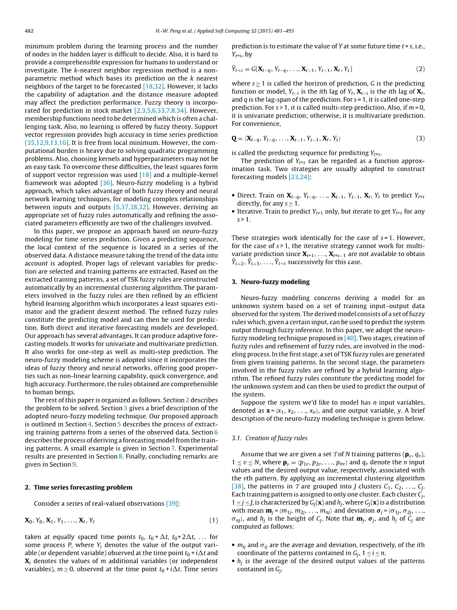 本文的其余部分组织如下。第2节描述要解决的问题。第3节简要介绍了所采用的神经模糊建模技术。我们所提出的方法在第4节概述。第5节描述了从一系列观察到的数据中提取训练模式的过程。第6节描述了从训练模式中得出预测模型的过程。第7节给出了一个小实例。实验结果列在第8节。最后,结束语在第9节中给出。